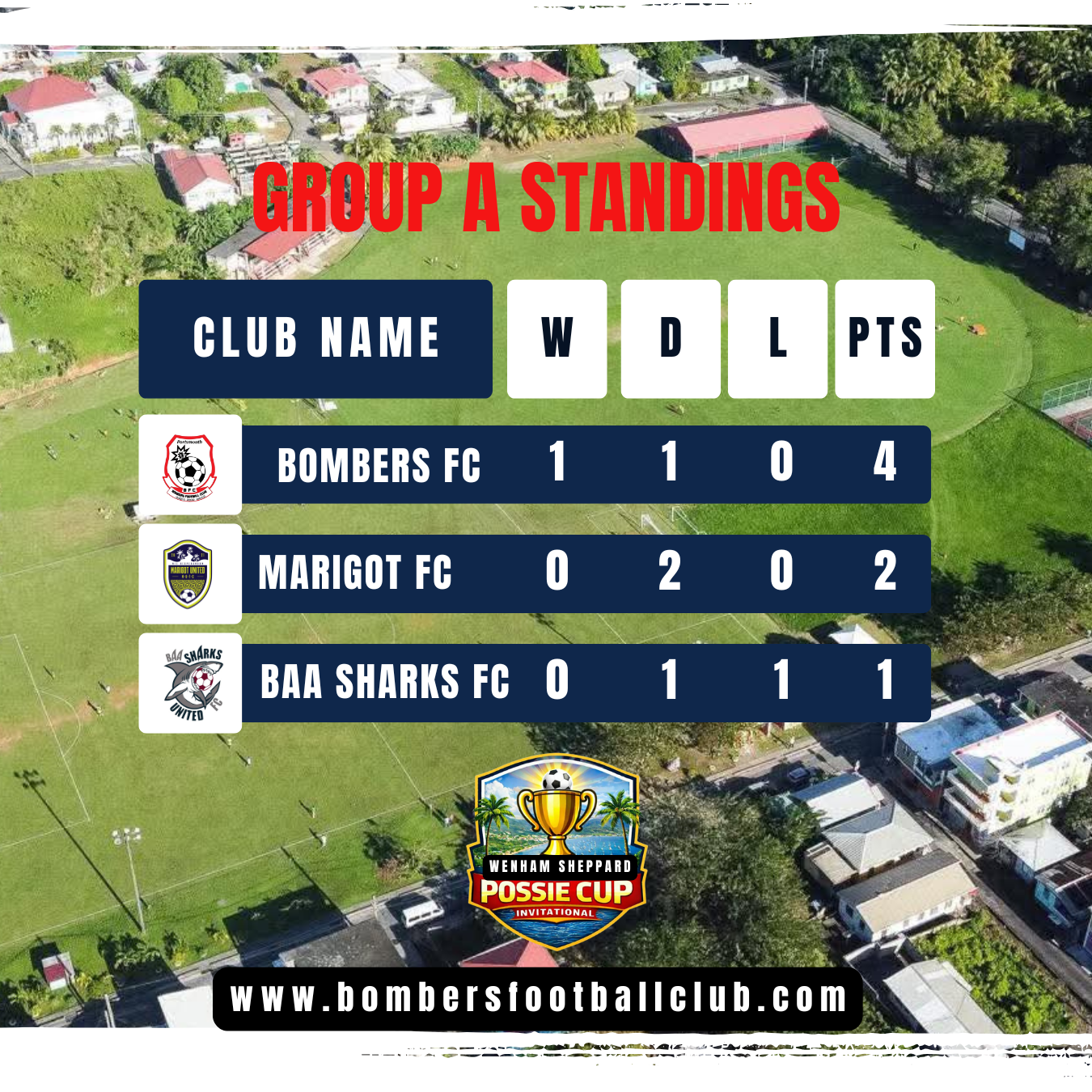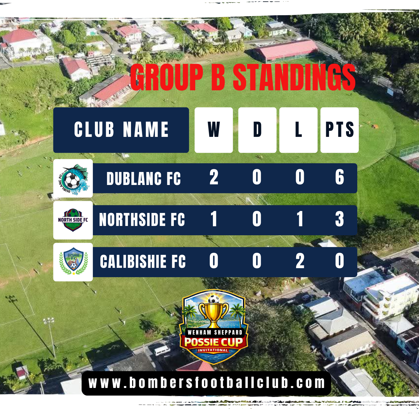 The Possie Cup (Invitational) is a high‑energy six‑team football tournament proudly hosted by Bombers FC in the northern district of Dominica. Designed to promote competitive football, it brings together ambitious clubs for intense, well‑organized fixtures that push players to raise their game. Through this invitational, Bombers FC champions community engagement, giving fans regular, meaningful matchdays to rally behind their local heroes and celebrate the sport they love.